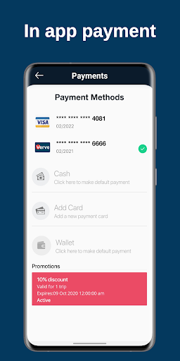 • You can pay inside the app or make cash payment to driver.