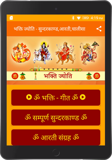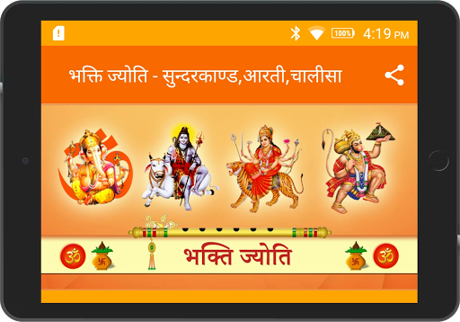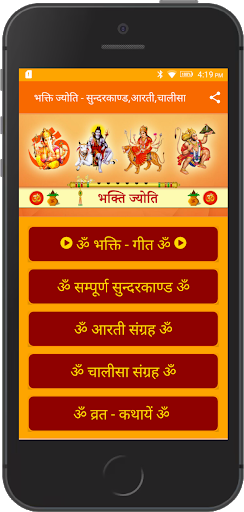 This App Bhakti Jyoti contains Sampurn Sundarkand, Aarti Sangrah, Chalisa Sangrah, Vrat Katha, Parv Tyohar and Bhakti Songs. We are providing offline content of Aarti, Chalisa, Vrat Katha, Parv Tyohar.