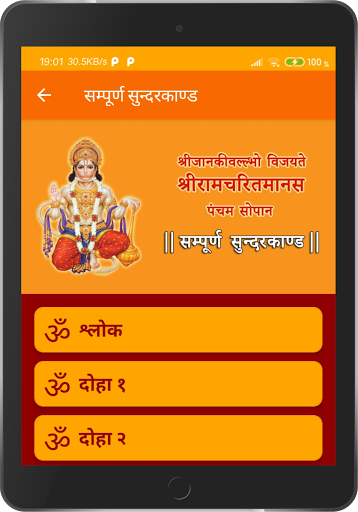 Sampurn Sundarkand available in Bhakti Jyoti App. All Doha lists available on one page. User can navigate very easily to next and previous Doha. Shri Hanuman Chalisa, Shri Ramayan Ji ki Aarti and Shri Hanuman Ji ki Aarti available on last page.