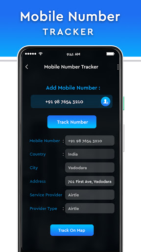 Mobile Number Tracker application helps you to track any phone number from India. You can search for any mobile number to find the contact name and the location. The city area, state, country and service operator of the phone number will be displayed and the geographic location will be shown on the maps.