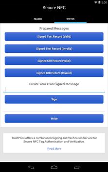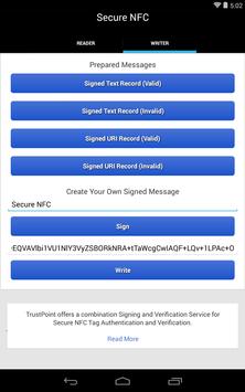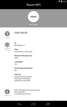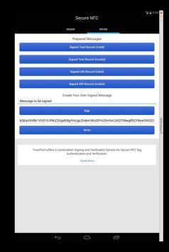 Created signed NDEF messages with the Secure NFC tag writer. These tags conform to the NFC Forum Signature RTD 2.0 Specification.