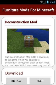 Furniture Mods For Minecraft The Deconstruction Mod adds a new block to the game which you can use to deconstruct any type of block or item to get the core items which was necessary to craft the block or item in the first place. Accidents can happen where you craft something unintentionally and on such occasions this mod really comes handy.