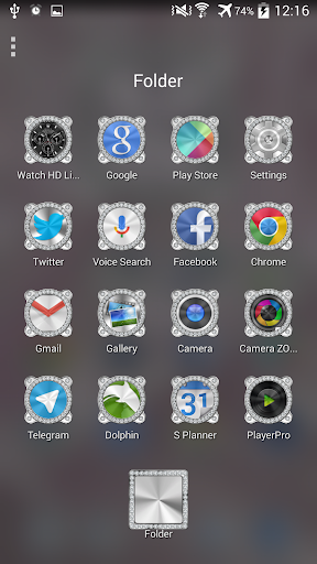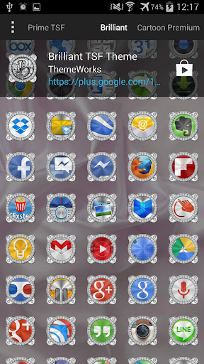 IMPORTANT! The TSF Theme Brilliant CLOCK widget you see in the screenshots is included in the theme, you can select it from the system wigdet list in Next Launcher (make sure you haven't moved the app to the SD Card).