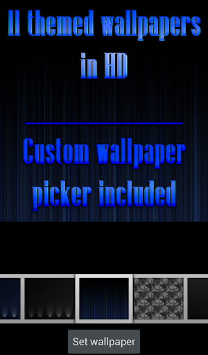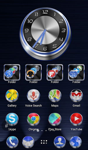TSF launcher theme compatible with latest TSF Shell version. Extremely detailed and high quality elegant and modern TSF Shell theme with high definition graphics including a 1500 pack of extra 128x128 sized icons, 13 custom themed HD wallpapers, and a metal clock widget, to give very detailed and defined graphics even in devices with the highest resolution screens. Everything is themed to the last detail, using metallic textures, lighting effects, reflections and gradients to give a great contrast and quality look.