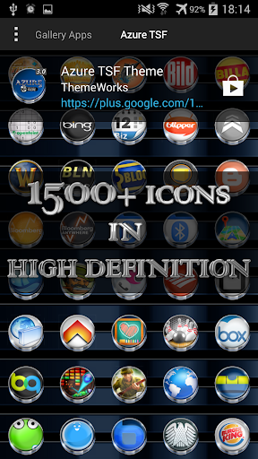 IMPORTANT! The TSF Theme Azure CLOCK widget you see in the screenshots is included in the theme, you can select it from the system wigdet list in Next Launcher (make sure you haven't moved the app to the SD Card).