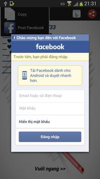 Ngoài ra ứng dụng rất có hữu ích khi có chức năng PostFacebook và Copy bạn có thể chia sẻ qua nhiều hình thức: Facebook, Zalo, SMS ...