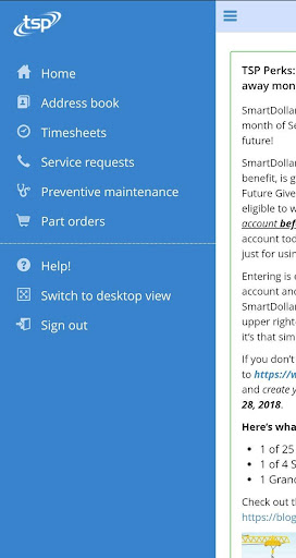 Exclusively for the use of TSP Inc employees and customers. Manage your service requests and company data from your phone. ** This is NOT a Thrift Savings Plan app! **