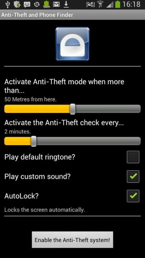 This part of the app detects when your phone has moved beyond a certain distance that you have set. For example, let's say you are out in a restaurant/bar etc. You can set the anti-theft to be active if the phone moves more than say, 100 metres from where you currently are. If that happens then: