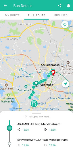 The TSRTC BUS TRACKING app improves your experience of Travelling by TSRTC buses by providing you accurate information on bus arrival at the bus stop near you from the vicinity of your home, office, shopping, functions or any other location. It provides better coordination for your travel plan by connecting you to Airport or Railway Stations in your search.