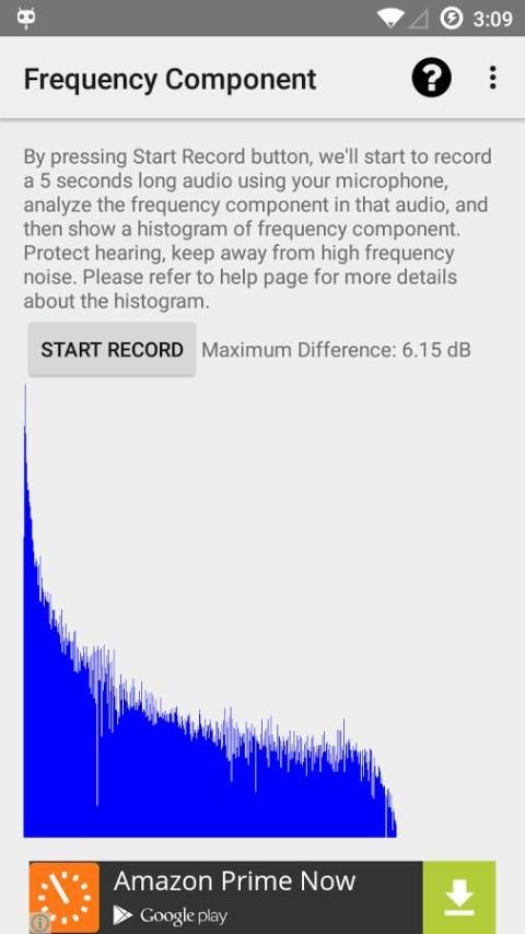 This app records 5 second sample, and analyze the frequency component of that sample. The graph will give you the distribution of power among different frequency components in the sample.