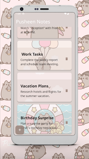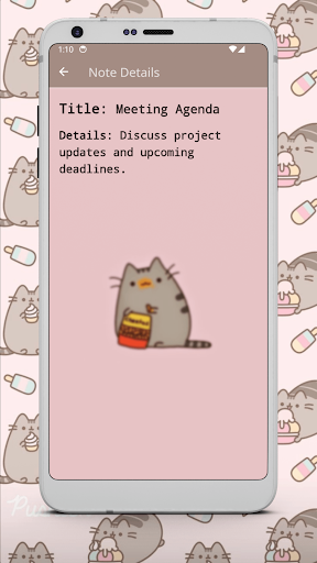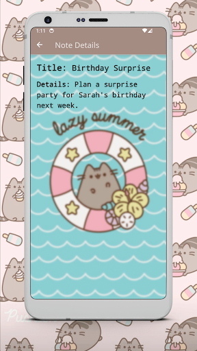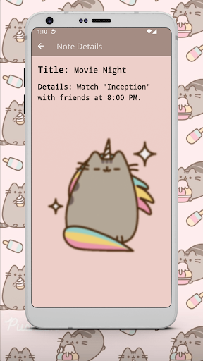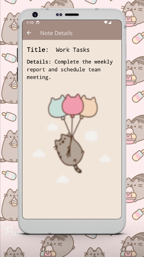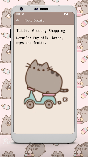 Creating notes is as easy as pie. Simply open the app, tap to create a new note, and start writing, with Pusheen The Cat by your side.