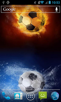 Two soccer balls hanging in the air! Each ball is in motion due to the natural disaster! Upper ball burns with bright fire, lower ball is surrounded by splashes of water!