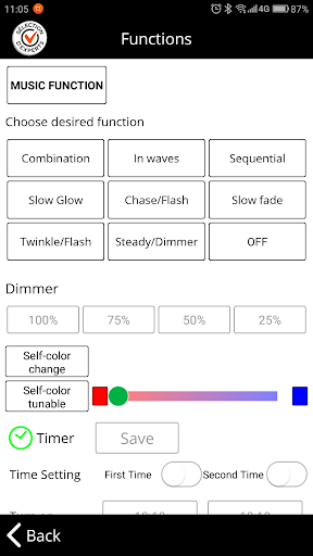-you can control 1 lighting set or control max. 4 lighting set by checking method to creat control group in one setting. - light control: this App have music function; 9 tradional function;