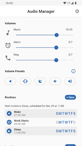 Whether it's home, work, school or any other location you can have Audio Manager adjust your phones volumes when entering or exiting a location.