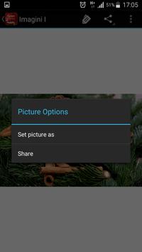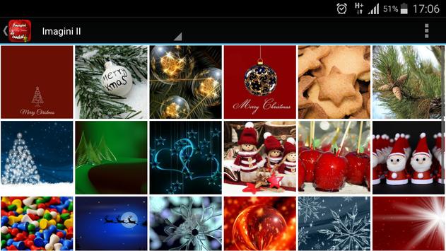 Printre imaginile din aplicatie enumeram: brazi impodobiti, globulete, reni, peisaje de iarna cu zapada, etc.
