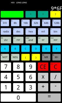 Base-N calculator: Standard functions, logical operators (AND,OR,XOR,NAND,NOR,XNOR,NOT,SHL,SHR,ROL,ROR), decimal, hexadecimal, octal, binary and arbitrary radix, precision options (8,16,32,64,128 bits).