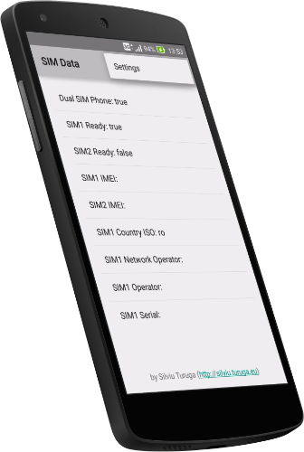 Basic information about your SIM card The following details are displayed: Dual Sim capability SIM1 and SIM2 IMEI SIM1 Country SIM1 Network Operator SIM1 Operator SIM1 Serial
