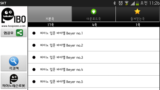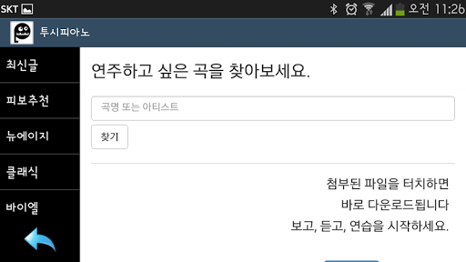 - 곡을 검색하실 수 있으며, 바로 연습하실수 있습니다.