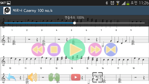 - 마디, 마디를 구분해서 보고, 듣고, 연습할수 있으며, 구간을 설정해 반복 연습이 가능합니다.
