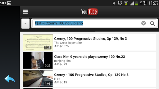 - Youtube에서 지금 연습중인 곡, 다른 사람들의 연주 동영상을 참고해서 보실 수 있습니다.