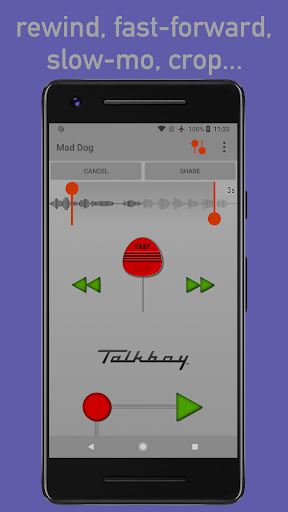 Record audio and easily speed it up or slow it down with the slider. Have fun with a perfect mix of an entertainment app and a simple voice recorder and audio editor.