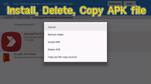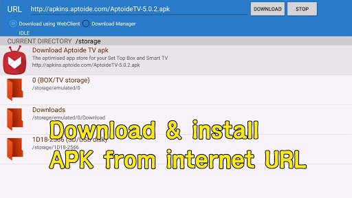 An APK file downloader designed for Android TV and TV box devices, download APK and other type of files from any URL (http, https, ftp) you specified.