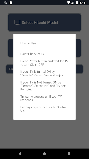 All Mobiles with IR Blaster supports this Hitachi TV Remote.