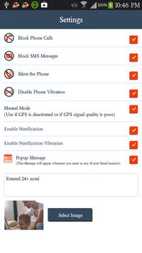 In Automatic Mode, Uncheck the Manual Mode and Check IN to an area where you don't want to be bothered with calls/ sms, and the Map will use your phone’s GPS to pin point your location. Give it a Name and radius of the location you are adding.