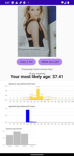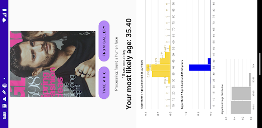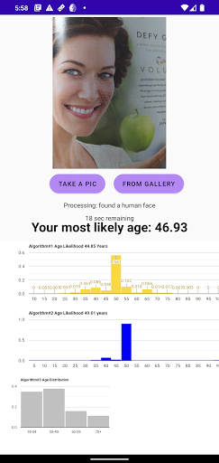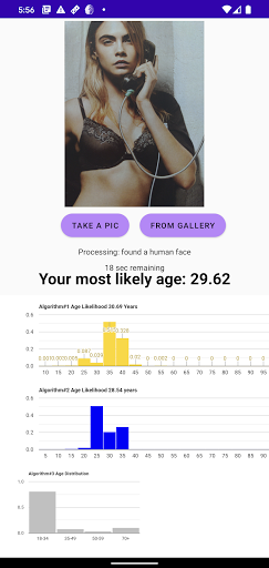 The app uses machine learning (a form of Artificial Intelligence) to estimate your age from your face photo. You pictures are not stored in our systems, we generate a vector (a set of numbers) for your face, and the numbers are used for age estimation. All traces of your image data is immediately removed once face vector is generated. We have 3 different algorithms, they have slightly different way of looking at your face for age.