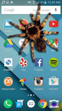 Ekrandaki Örümcek, telefonunuzun içinde örümcek yürümenin korkutucu bir animasyonudur! Ekranın yanından yanına giderken gerçekçi bir örümcek hareketi görüntüler. Bir arkadaşınıza telefon açın ve gerçek bir örümceğin cep telefonunuzdan yürüdüğünü düşünecektir. Bu arada normal olarak telefonu kullanabilirsiniz. Tarantula, diğer uygulamaların üstünde yürüyebilir.