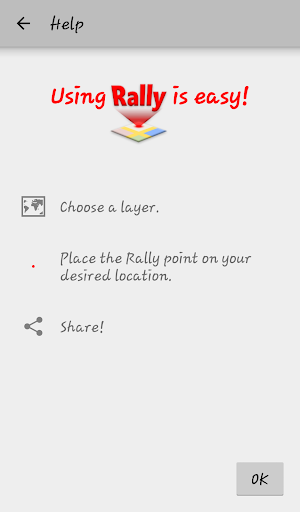 Rally uses the precision of your mobile's GPS along with the accurate mapping of Google Maps to easily point out locational information to others.