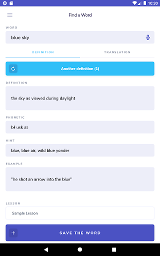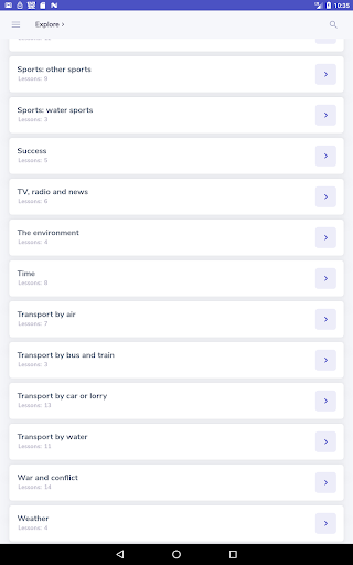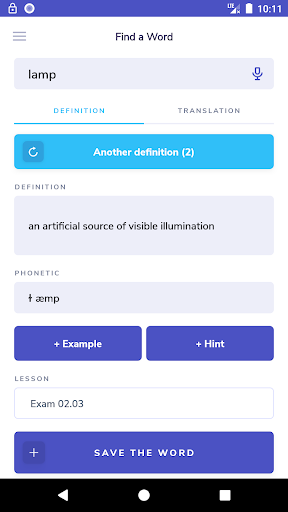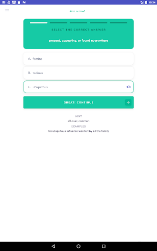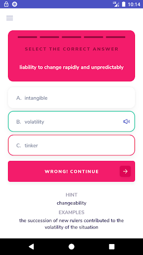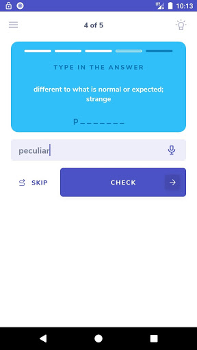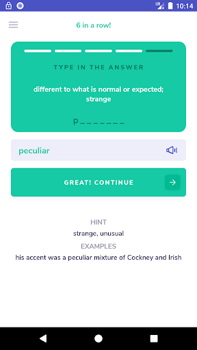 ⌚. Reach levels from the initial ones, which familiarize you with new words, to the last ones, which check whether you have memorized your vocabulary.