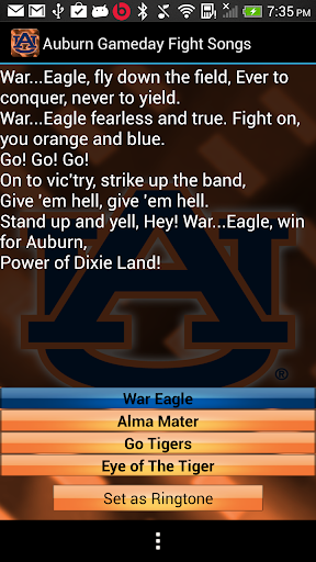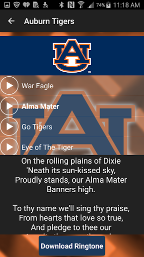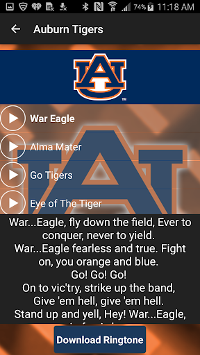 Officially licensed "Auburn Tigers" Fight Songs and "Ringtones"