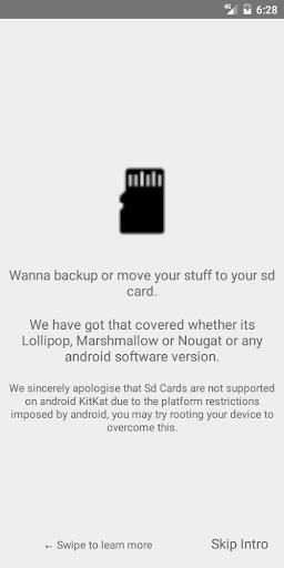 Application does not support external memory cards on unrooted android KitKat (Internal memory only).