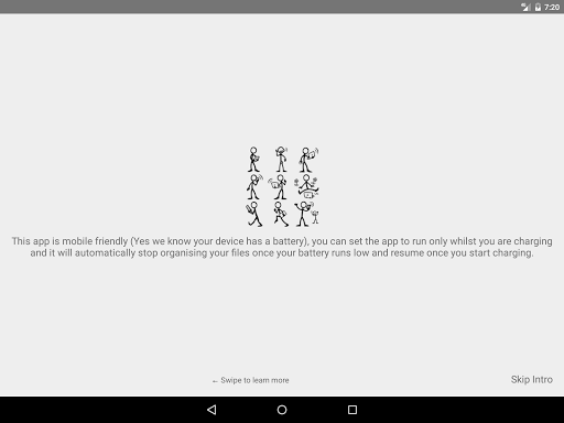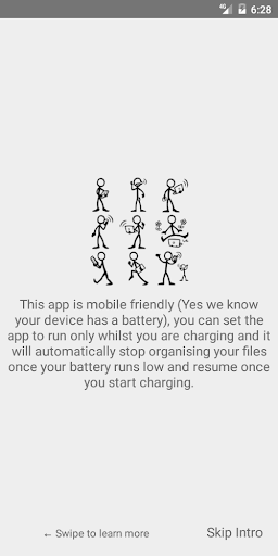 This app is mobile friendly (Yes we know your device has a battery), you can set the app to run only whilst you are charging and it will automatically stop organising your files once your battery runs low and resume once you start charging.