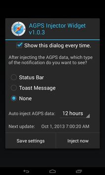 AGPS Injector Widget is an Android widget for quickly injecting the NTP (Network Time Protocol) time and AGPS data (Assistant-GPS data, i.e., xtra.bin) into the Qualcomm's gpsOne engine to significantly speed up the GPS lock time for Qualcomm CPU-equipped devices.