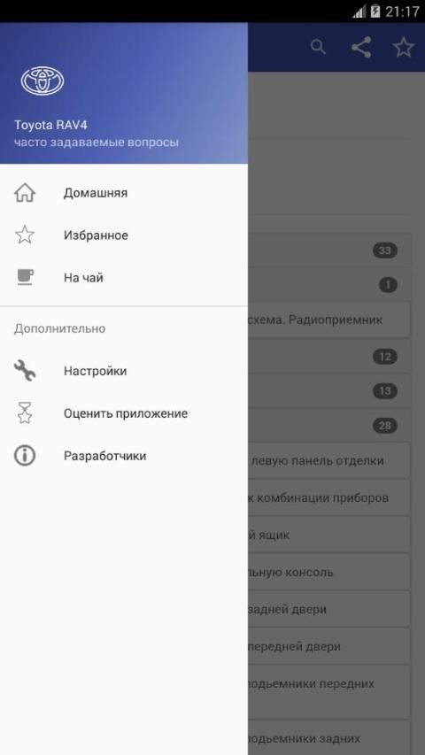 В приложении Toyota RAV4 FAQ собраны наиболее часто встречающиеся вопросы возникающие у владельцев во время эксплуатации данного автомобиля и ответы на них.