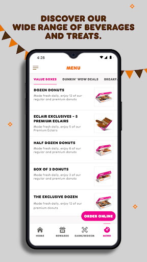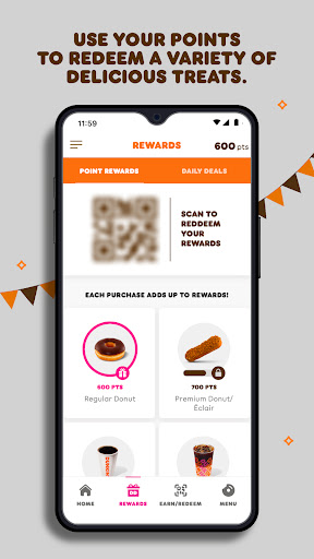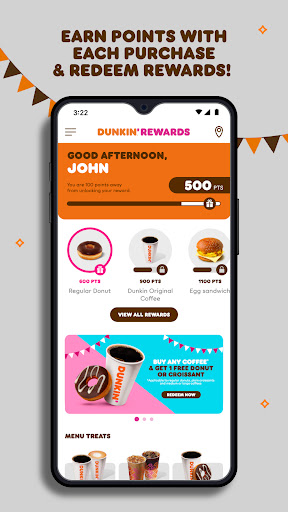 The Dunkin’ Rewards App allows you to earn points and redeem rewards, catch our daily exclusive deals, discover new products we add to our menu, share your feedback, and in case you need to visit us or get in touch, it helps you find the closest Dunkin’ branch to you.