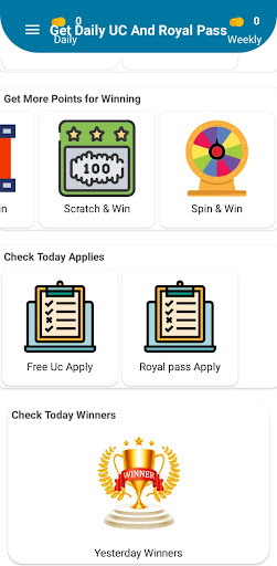 By using this app user can earn uc and royal-pass very easily, because this app has a very user friendly graphic user interface. By giving 10 to 15 mints daily on this app user can easily earn and win uc for their game shopping and if they don't apply for uc on daily basis then their points will be stored into the wallet and at the end of the week they can apply for royal-pass and get a chance to win royal-pass.