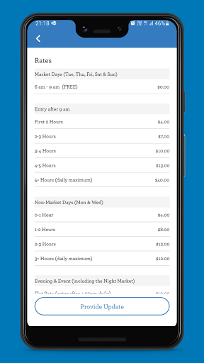 The QVM Parking app allows you to view the parking details at the Queen Victoria Market.