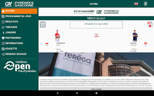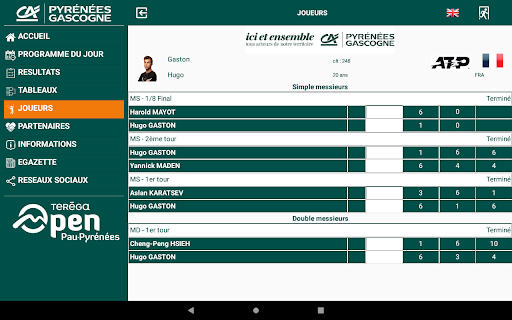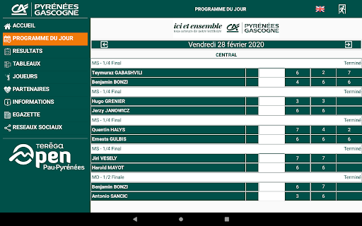 Abierto Terega Pau Pyrénées Tenis ATP Challenger Resultados Programa del Día Socio