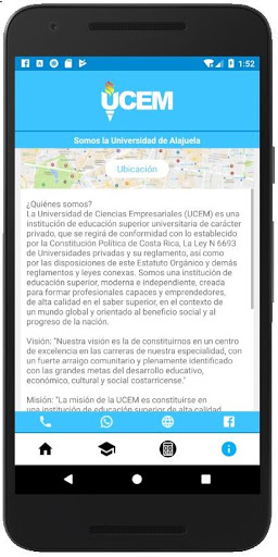 UCEM App es la aplicación que la Universidad UCEM ha puesto a disposición de sus estudiantes, docentes y aquellas personas interesadas en obtener información relacionada con las carreras y servicios brindados por la institución.