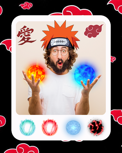 Sharingan Rasengan Eyes Photo Maker Studio Editor let's you edit yourself on Photos with cool sharingan eyes to impress your friends or family.