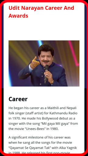 This App Is Basically Based On Hit's Songs Of Udit Narayan. If You Like Him Song Then Don't Go Anywhere Just Download Now And Enjoy It.