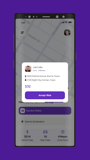 This mobile application assists drivers to accept rides requested by the users, reach users location and drop users to their preferred location.