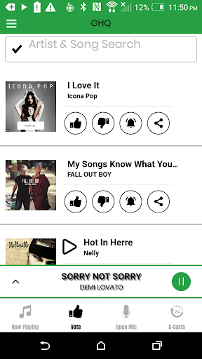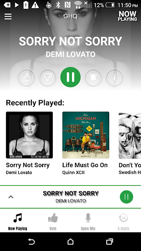 * Use the Open Mic feature to record yourself and submit to GHQ for a chance to be played on air.