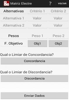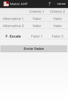 O usuário deverá inserir o nome do problema, quantidade de alternativas e critérios, a partir desses dados o ATD mostrará uma matriz de decisão que deverá ser preenchida pelo usuário, ao clicar no botão "enviar dados" o ATD apresentará uma tela com