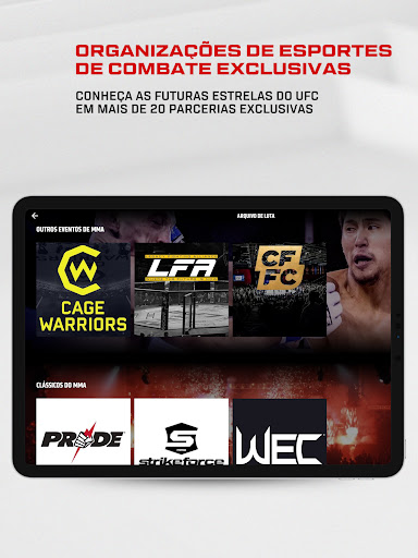 E mais: aqui você também encontra milhares de horas de conteúdo original e exclusivo, documentários, bastidores, e transmissões ao vivo de vários outros eventos e organizações de MMA... Além do maior arquivo de lutas históricas do mundo, incluindo todos os eventos do UFC, Strikeforce®, PRIDE®, WEC, e muitos outros!