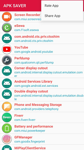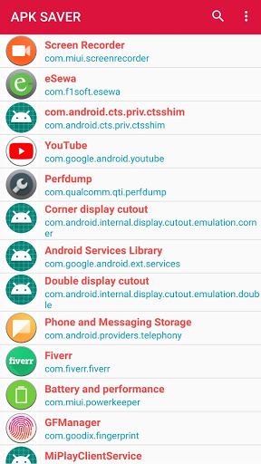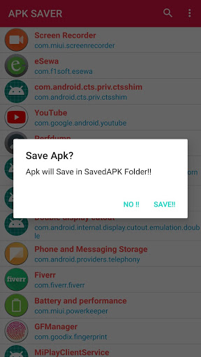 Apk saver app is a free app All red scheme colour in-app and Have a Search Bar in the action bar. Easy to Search Apps within the app. APK SAVER app will display all Installed app From store And all the System apps.