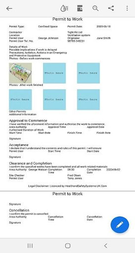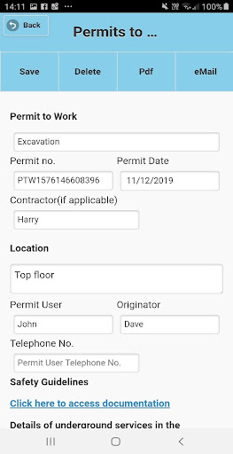 Use the App to produce Permits for Hot Works, Excavation, Roof Access, Fire Systems, Confined Space and General tasks pre-formatted forms.